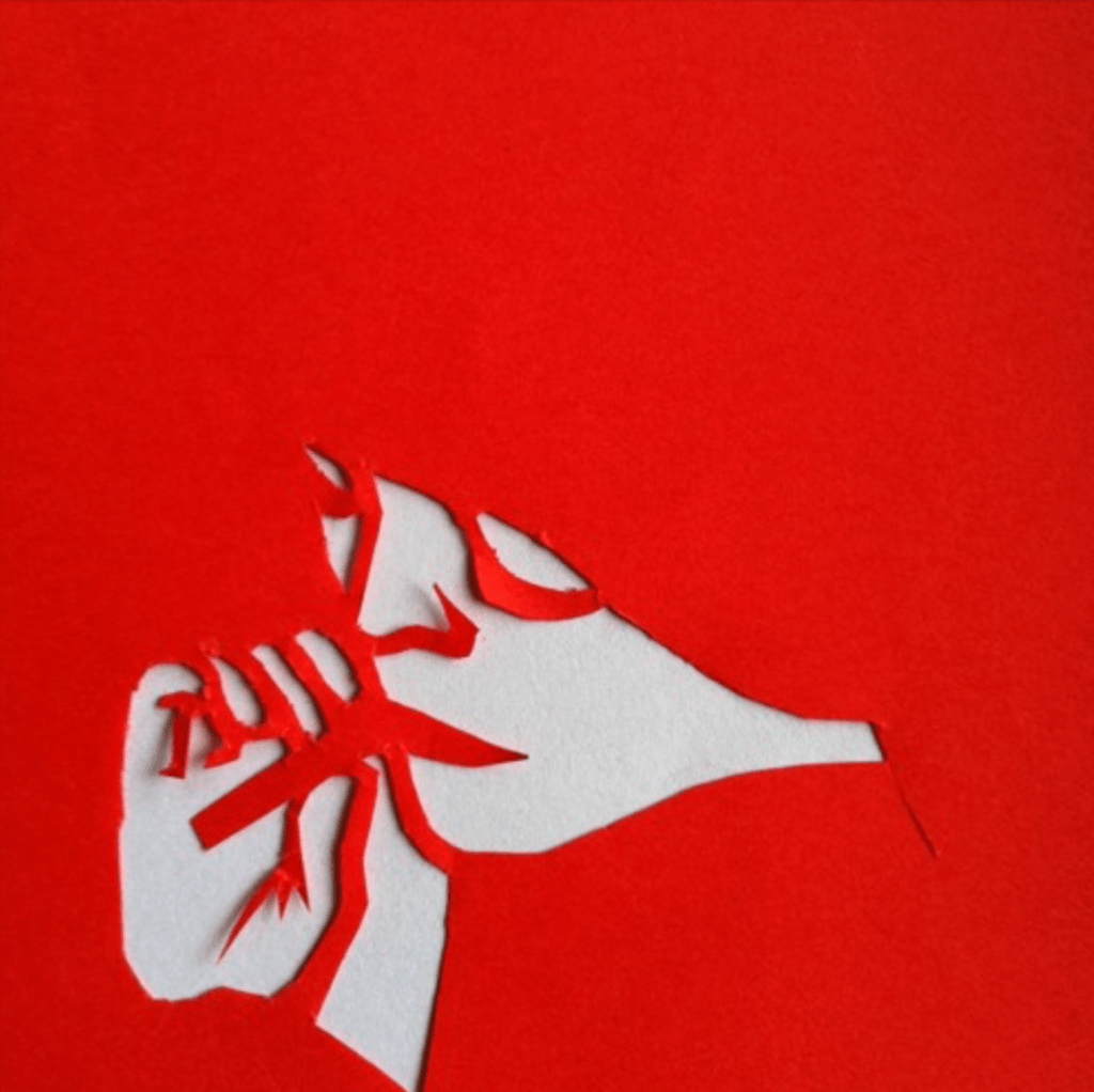 ‘Papercut’ Ca 51 x 140 cm. To papirsklip mellem plexiglasplader. 1250 kr pr. stk.